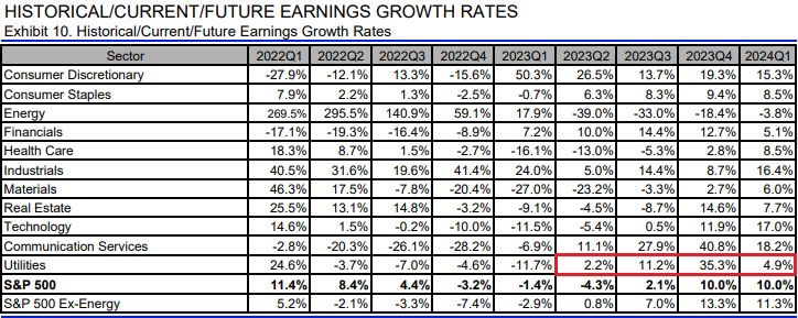 Тем не менее, период окончания роста ставок в США и стабильный тренд на снижение инфляции должны положительно сказаться на чистой прибыли коммунального сектора страны. Компании постепенно учитывают подскочившие операционные и процентные расходы прошлого года в новых тарифных заявках, в связи с чем в ближайшие 3 квартала сектор, согласно прогнозам, опередит S&P 500 по темпам роста чистой прибыли, а в IV квартале вовсе окажется в лидерах по показателю, немного отставая от другой защитной истории, а именно коммуникационных услуг.