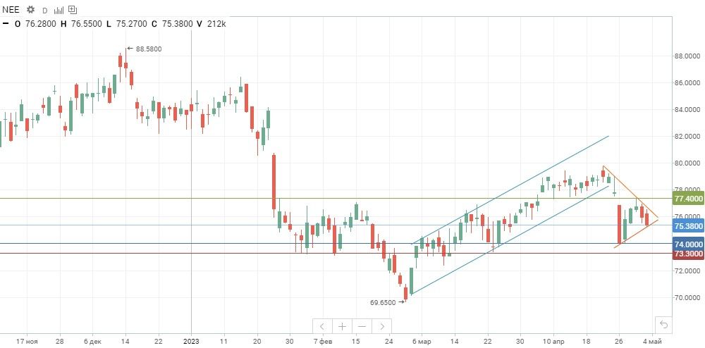 Прочность тренда на декарбонизацию определяет нахождение акций NextEra Energy в числе наших фаворитов в секторе на рынке США. Помимо того, что компания является лидером по объемам установленной возобновляемой мощности в стране, ее регулируемый бизнес располагается во Флориде, у которой один из наиболее благоприятных регуляторных климатов в стране. Инвестиционные амбиции NEE и "зеленый" фокус позволяют компании рассчитывать на 7-8% всего энергорынка США к 2026 году при текущей доле около 5%. Наш рейтинг по акциям компании – "покупать" с целью $94 и потенциалом 25%.