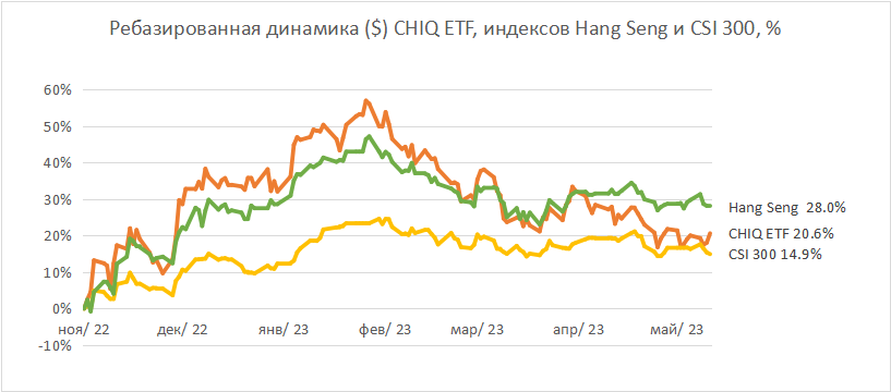 CHIQ — целевая ставка на дискреционные траты китайского потребителя. Население Поднебесной (1,4 млрд) может увеличить свои расходы в 2023 году за счет отказа Китая от жестких ковидных ограничений. Жители Китая, которые провели около трех лет в локдаунах могут совершить отложенные покупки, увеличить свои траты на товары и услуги вторичного спроса — путешествия, походы в рестораны и досуговые центры, что подстегнет результаты компаний, входящих в ETF.
