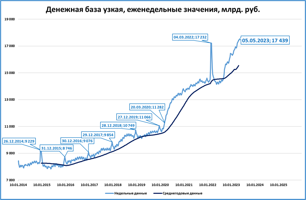 ● Узкая денежная база установила новый исторический рекорд, поднявшись до 17,4 трлн рублей.