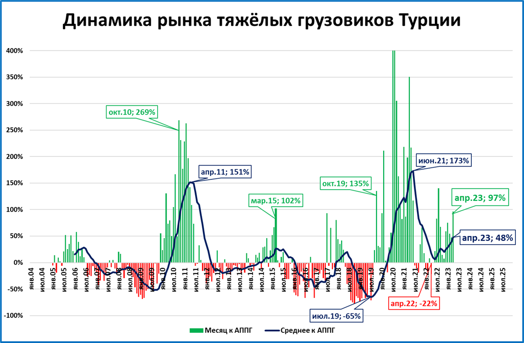 ● В Турции рынок грузовиков продолжает быстро расти: в апреле он вдвое выше, чем год назад.