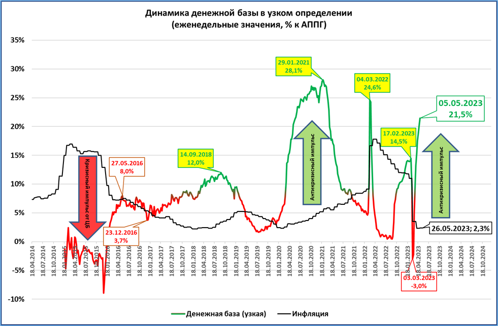 Но с осени прошлого года денежная масса продолжает расти темпами выше 23% годовых.