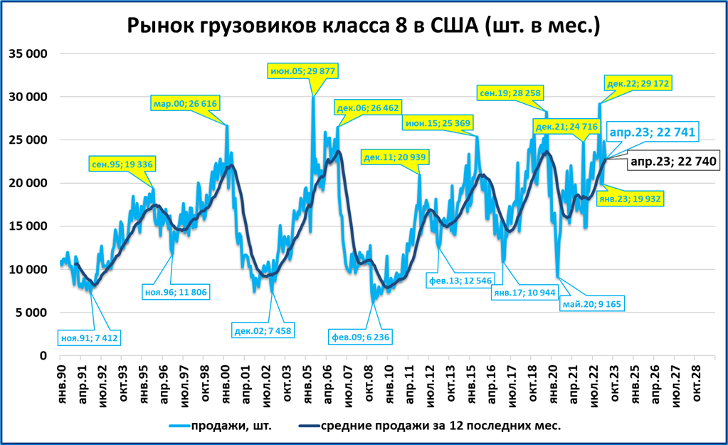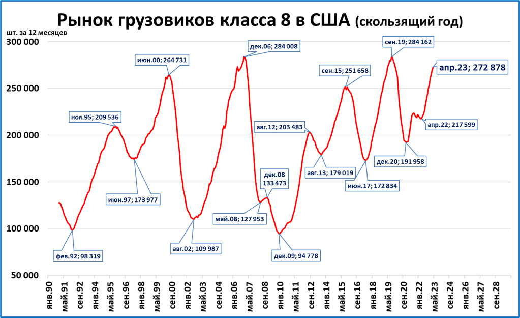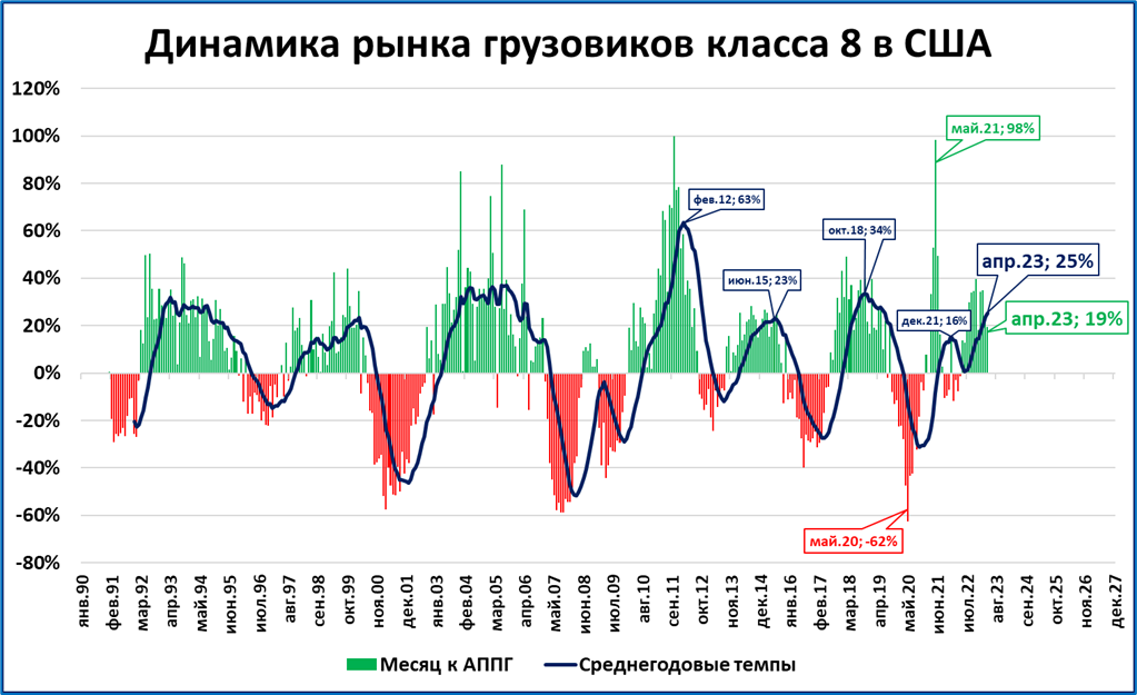 ● В США рынок грузовиков в апреле вырос на 19% и идёт на исторический рекорд.