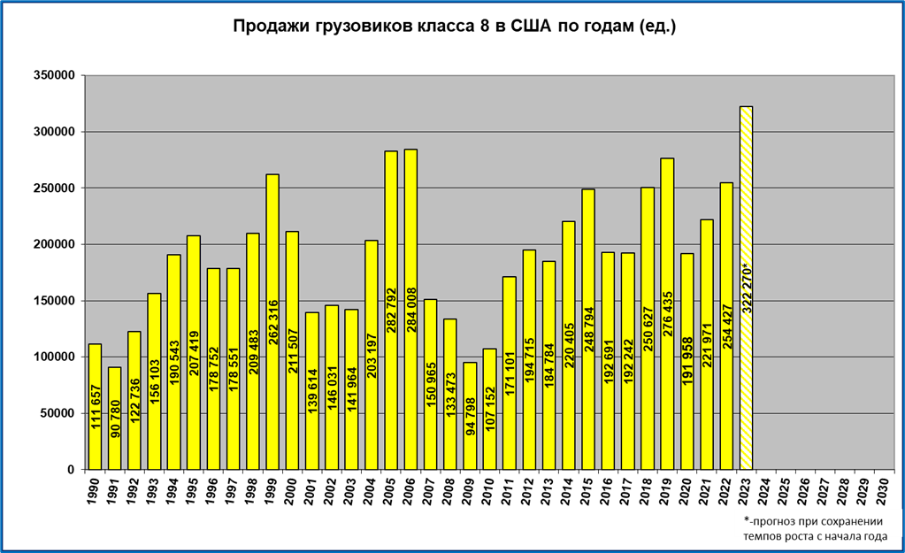 В апреле в США было продано 22,7 тыс. тяжёлых грузовиков.