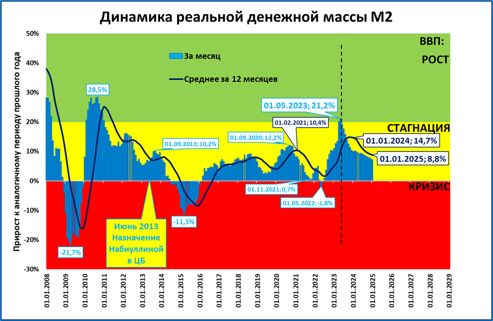 В 2024 году среднегодовой рост РДМ продолжит замедляться до +8,8% (см. выноску 01.01.2025 на графике 4).