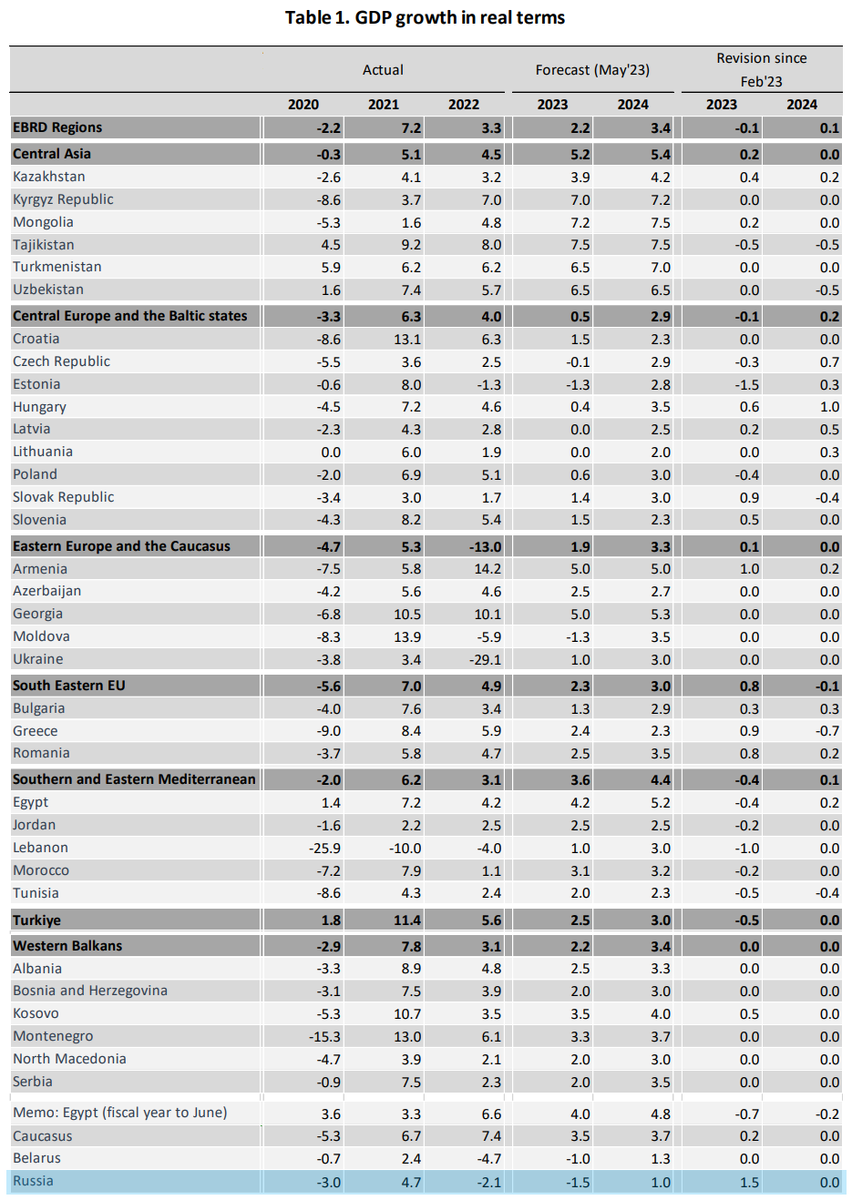 Выпустил он очередной, на этот раз майский, прогноз по экономикам региона. В котором, о ужас, пересмотрел прогнозы по порванной в клочья экономике в сторону... повышения. Пишут, что в этом году наша с вами экономика упадет не на 3,0%, как думали еще в феврале, а всего на 1,5%. А следующий год и вовсе будет отмечен ростом.