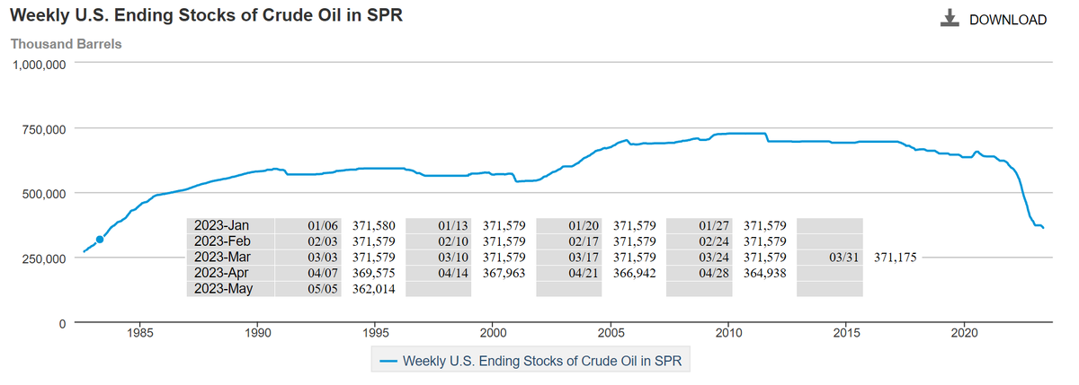 На 5 мая нефти там осталось 362 014 тысяч баррелей.