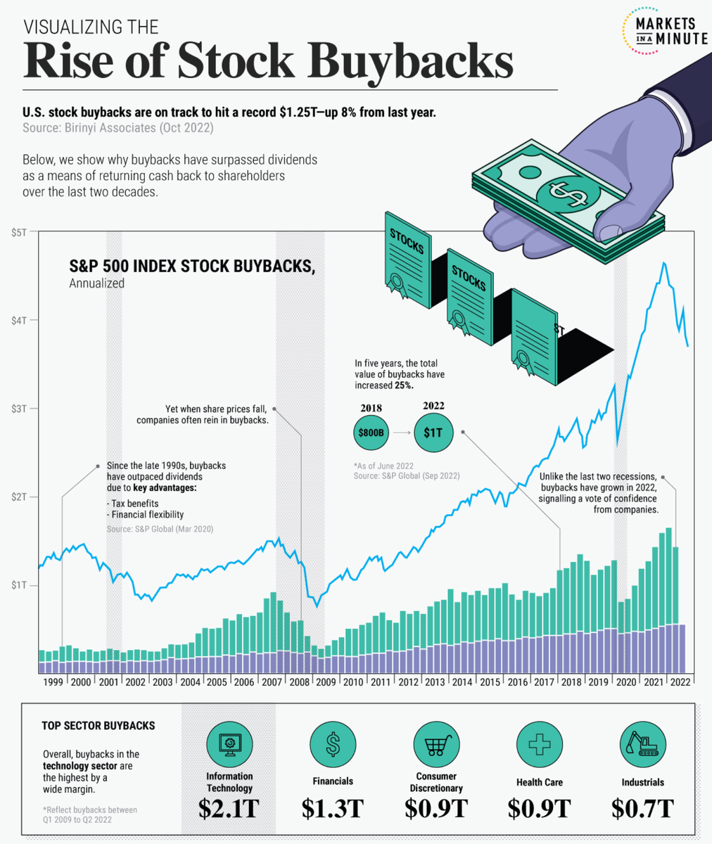 Кстати, на второй картинке динамика байбеков и индекс S&P500. Наглядненько.