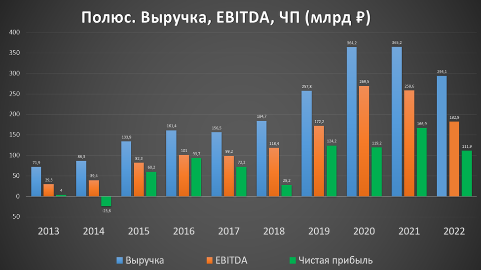 Полюс – это крупнейший производитель золота в России, и входит в пятёрку мировых золотодобывающих компаний. Главная отличительная черта компании – это очень низкая себестоимость производства. Последний отчет разбирали здесь.