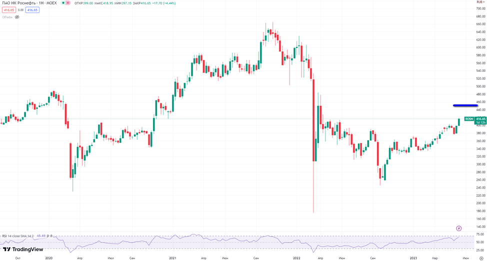 Акции с октября 2022 года отскочили на 60%, но перспективы роста ещё сохраняются. Ближайшая цель 450 рублей.