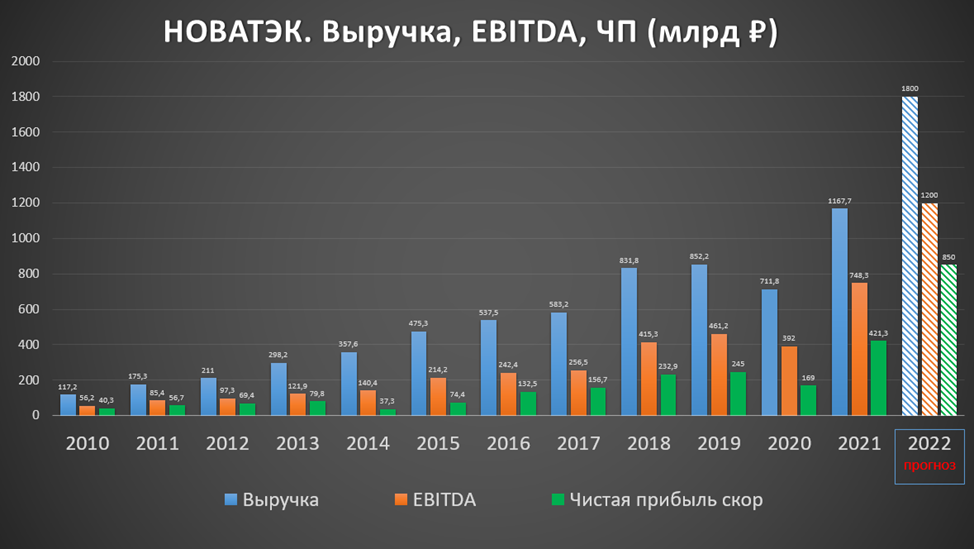 А цены на нефть и газ в 2022 году были высокими. Поэтому, как мы знаем со слов главы компании Михельсона, компания нарастила прибыль более, чем на 50%. Таким образом прогнозные финансовые результаты по итогам года рекордные.