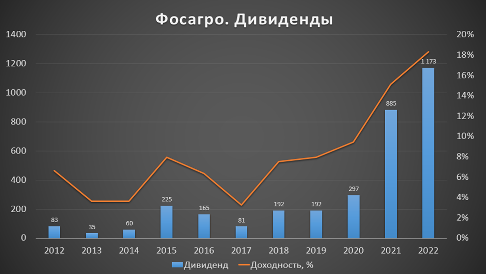Фосагро выплатило рекордные дивиденды за 2022 год. Правда, из-за падения цен на удобрения, дивиденды за этот год должны быть ниже.