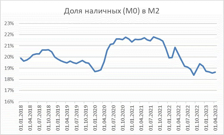 Кроме доли наличных можно ориентироваться так же на соотношение темпов роста денежной массы М2 и наличных.