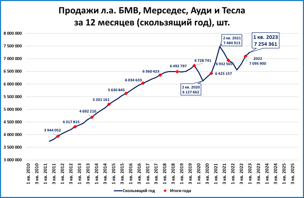 Продажи за последние 4 квартала (скользящий год) выросли до 7,3 млн. единиц.