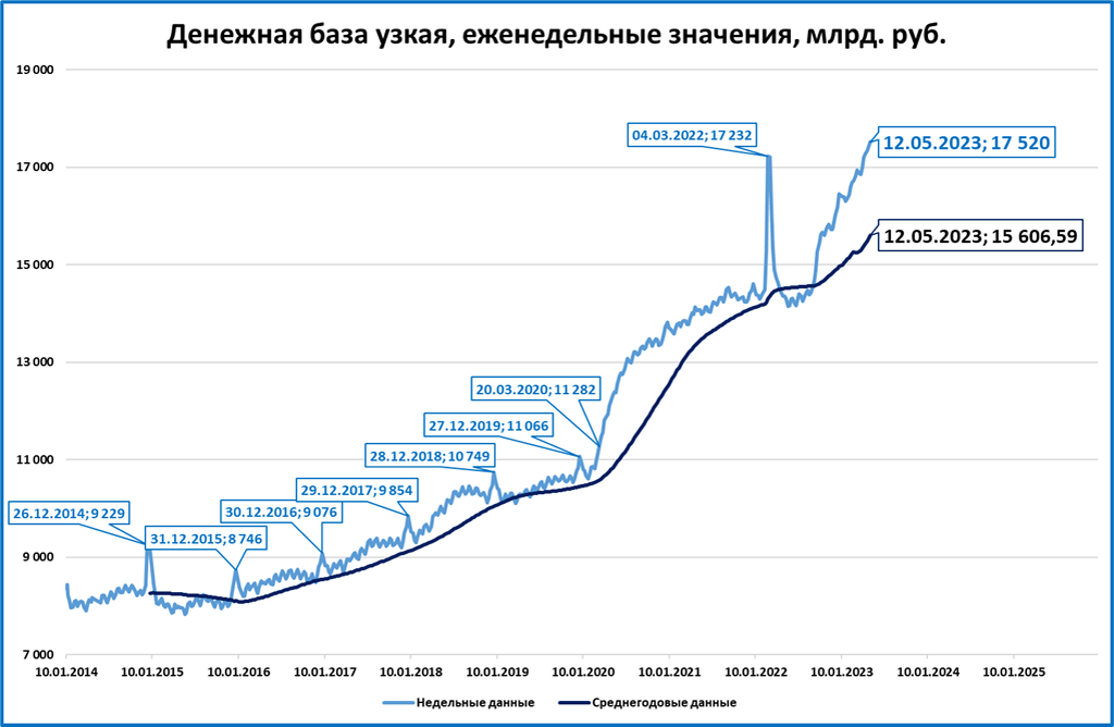 ● Узкая денежная база превысила 17,5 трлн рублей – это новый исторический рекорд.