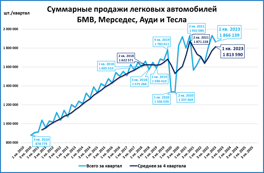 Всего в 1 квартале было продано 1,87 млн. премиум-автомобилей четырёх марок.