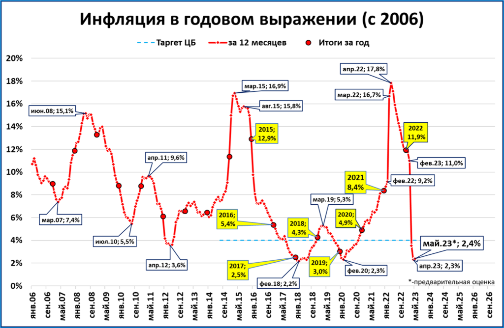 ● Инфляция по итогам мая может составить 2,4% годовых.