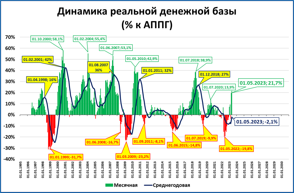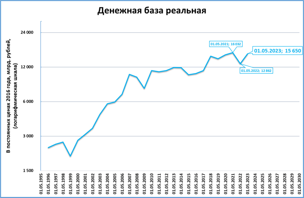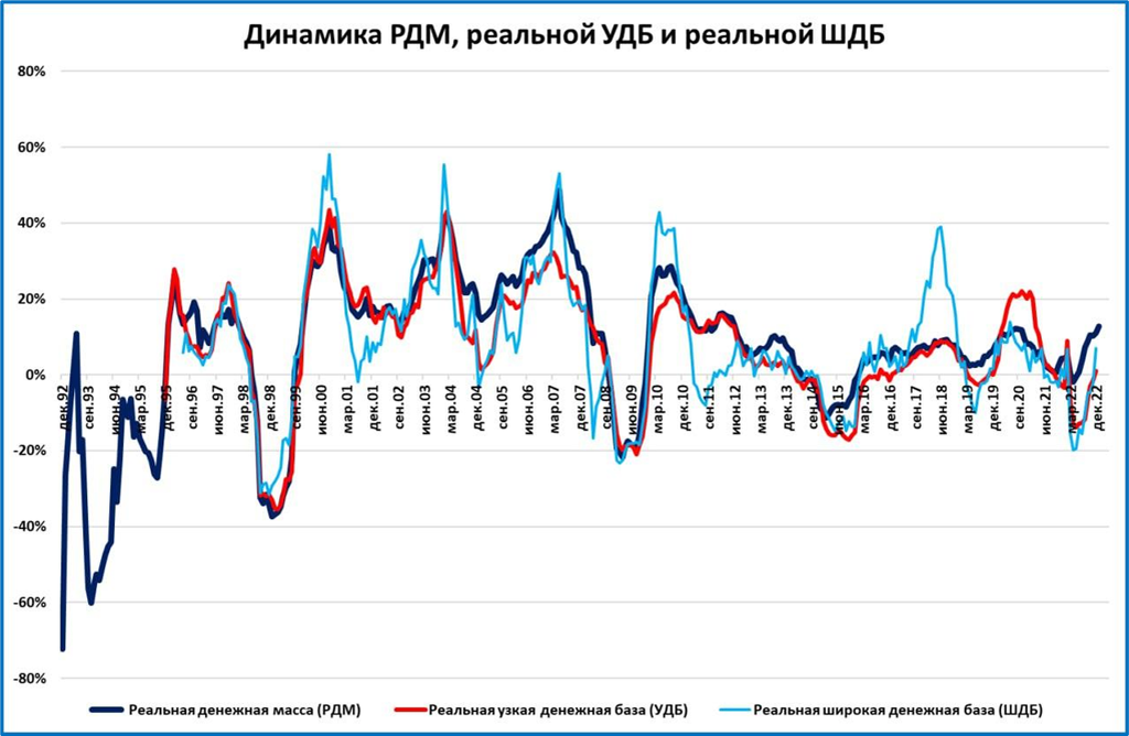 Напомню, что динамика реальной денежной базы может существенно отклоняться от динамики реальной денежной массы (РДМ).