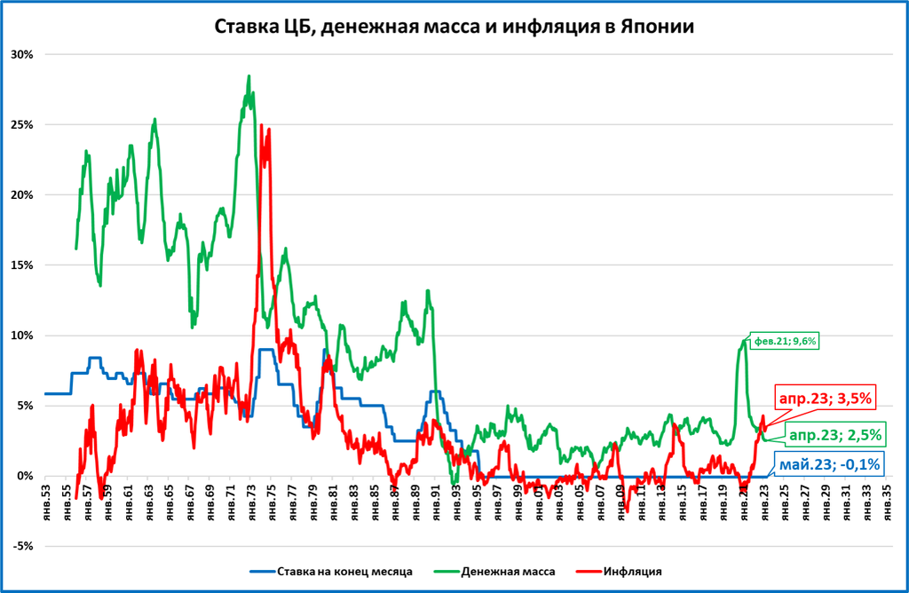 ● В Японии реальная денежная масса сокращается. ВВП по итогам 1 квартала при этом растёт.
