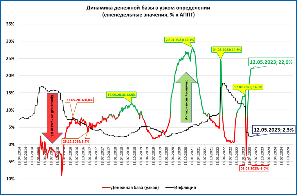 Рост денежной базы благоприятен, так как снижает риски банковской системы за счёт снижения денежного мультипликатора.