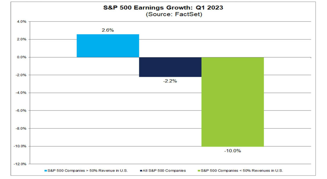 За 1-ый квартал 2023 отчиталось уже 95% компаний S&P 500. Как и ожидалось, результаты оказались умеренно позитивными. По крайней мере, по сравнению с 4 кварталом прошлого года. Сказалось оживление настроений потребителей и бизнеса, которое мы могли видеть в бодром росте числа рабочих мест, улучшении индексов PMI и, не в последнюю очередь, котировках акций. Интересный штрих: по данным ”FactSet”, число упоминаний слова «рецессия» на отчетных конференциях компаний S&P 500 упало в 2 c лишним раза по сравнению со 2-ым кварталом 2022.