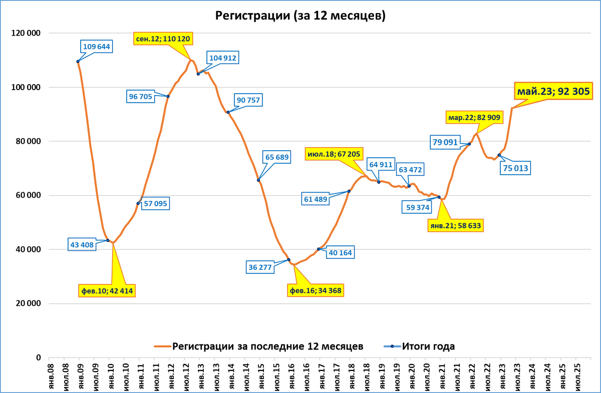 Продажи за последние 12 месяцев превысили отметку в 90 тысяч и составили 92,3 тыс. единиц.