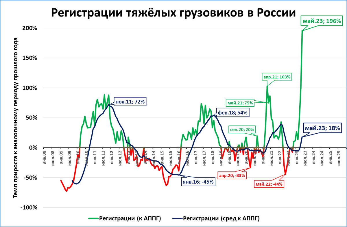 Ускорение рынка продолжается. Текущие темпы (+196%) намного выше среднегодовых (+18%, тёмно-синяя линия на графике), что говорит об отсутствии признаков замедления или насыщения рынка.