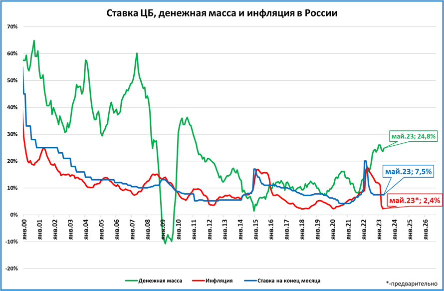 В реальном выражении, благодаря низкой инфляции, рост денежной массы тоже ускорился.