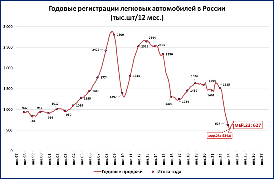 Продажи за последние 12 месяцев (скользящий год) выросли до 627 тыс. шт.