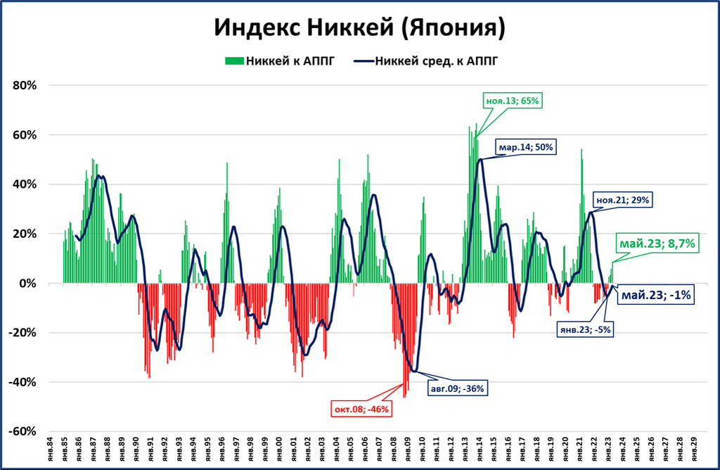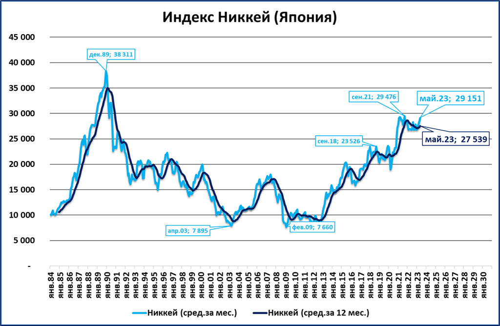 В мае индекс японского фондового рынка Никкей поднялся выше 29 тыс. пунктов и приблизился к рекордным за последние 30 лет значениям (сен. 2021 года, 29 476 пунктов).