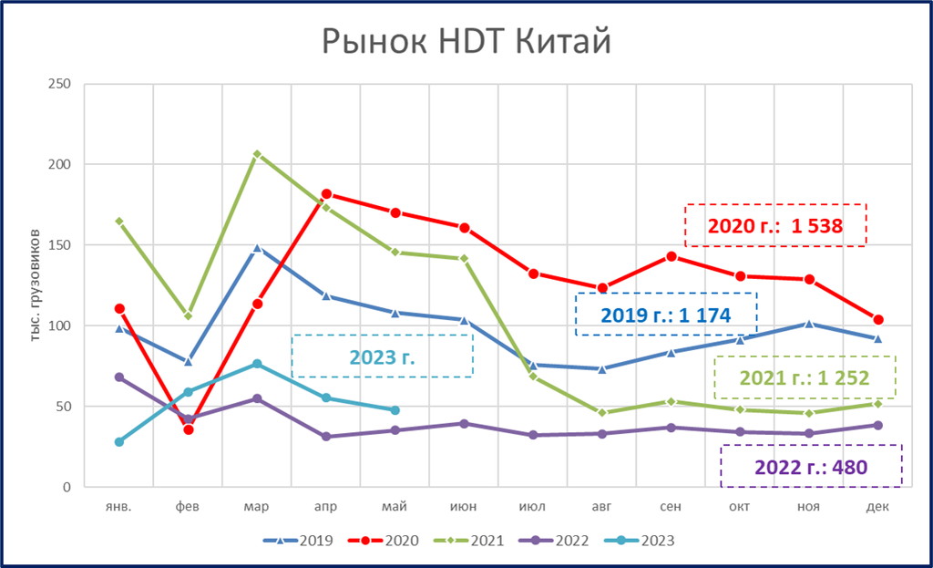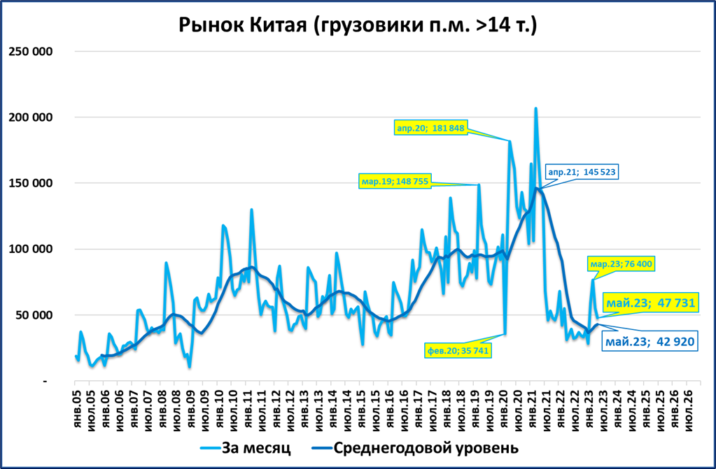 В мае по нашей предварительной оценке на рынке Китая было продано 47,7 тыс. тяжёлых грузовиков*