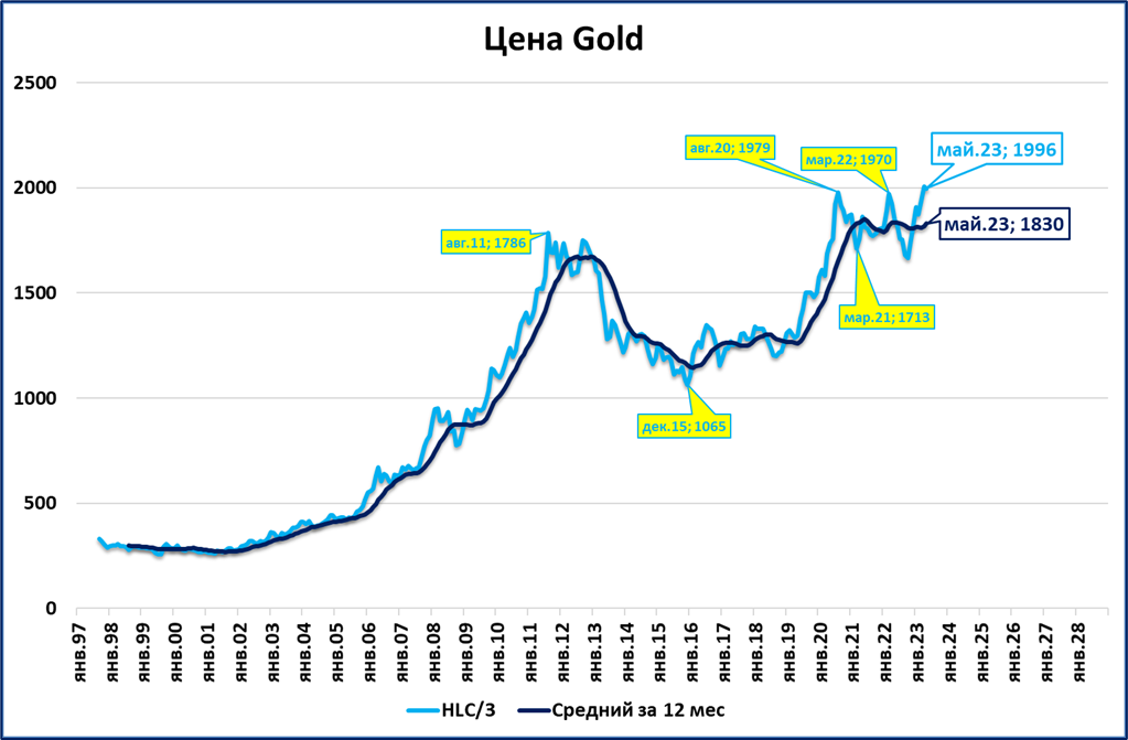 Среднегодовые цены на золото при этом по-прежнему с января 2021 года находятся в узком диапазоне 1780-1840.