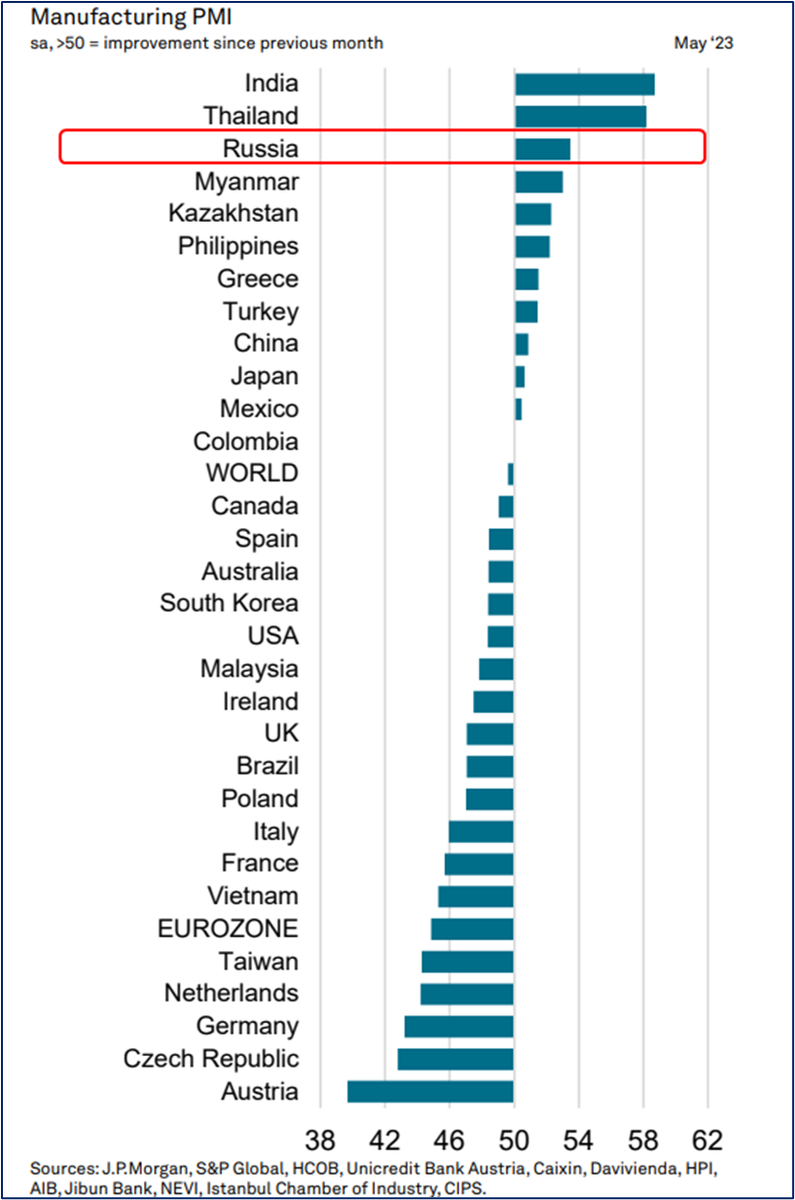 Среди крупнейших экономик мира деловая активность растёт в Индии, России, Турции, Китае и Японии.
