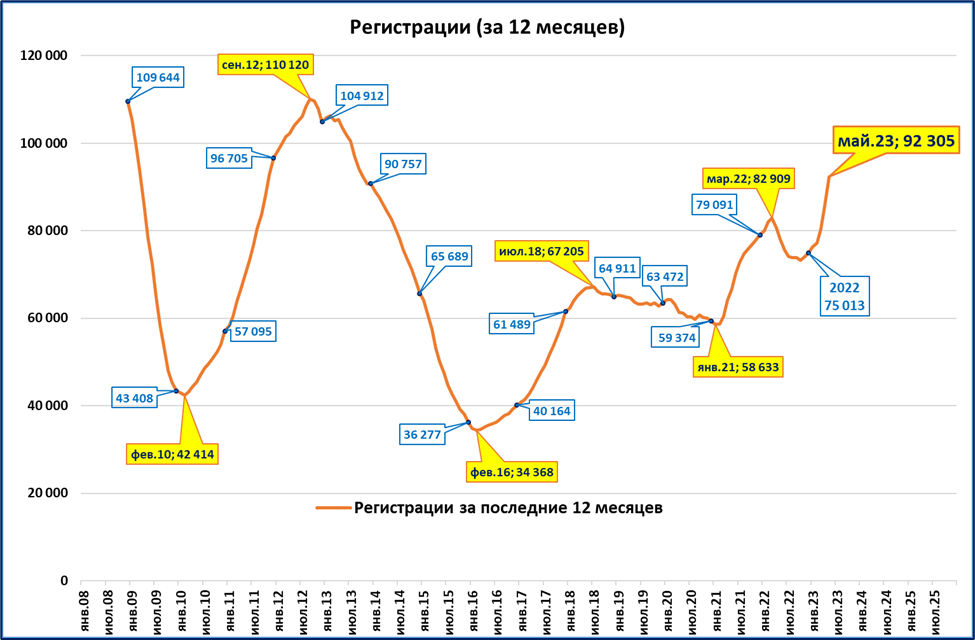 Если темпы первых пяти месяцев (январь-май; +63,5%) сохранятся до конца года, то по итогам 2023 года рынок вырастет выше 120 тыс. штук.