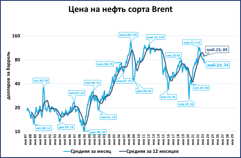 Средние цены на нефть марки Брент в мае составили 74 доллара за баррель.