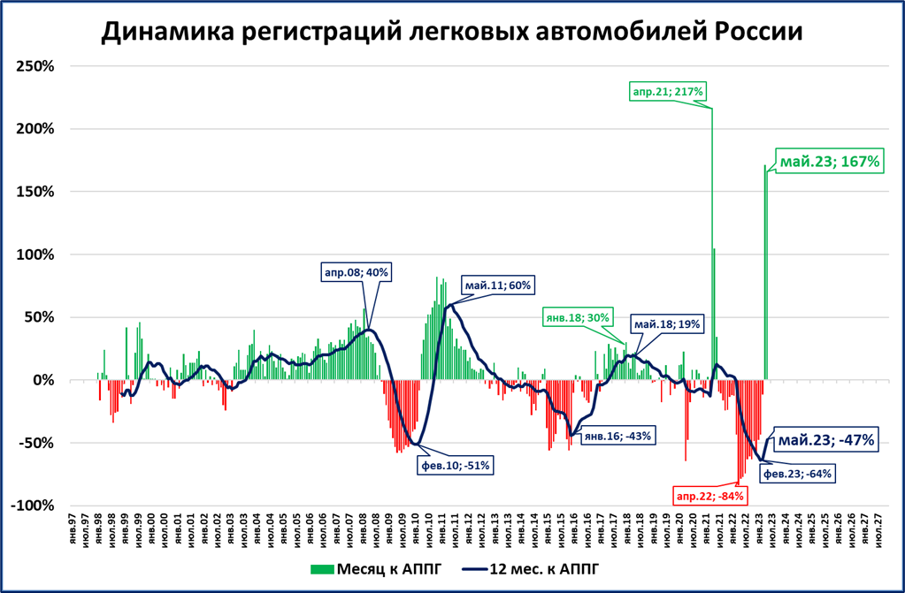 Это в 2,6 раза больше (+163%), чем в мае 2022 года, который был низшей точкой прошлогоднего кризиса.