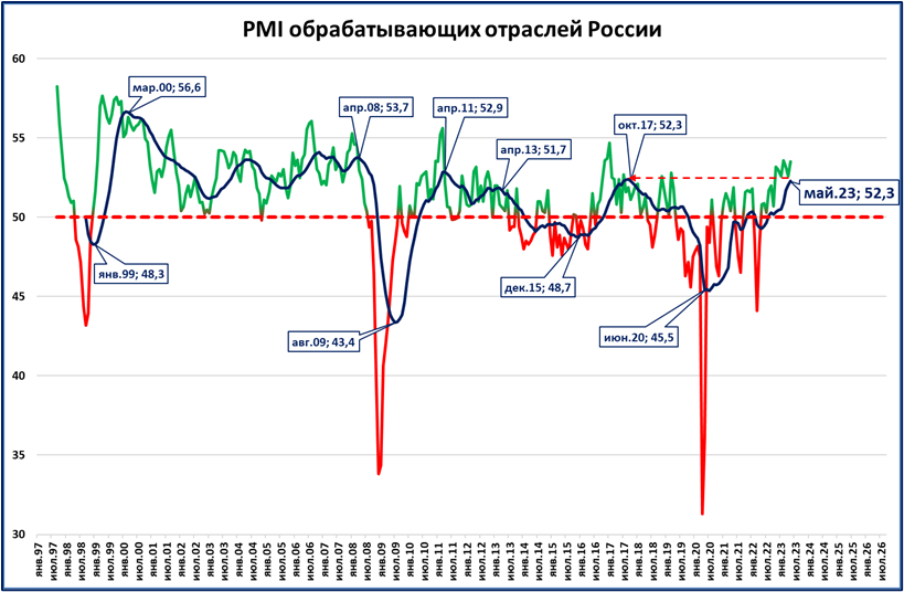 Индексы PMI говорят о том, что в мае рост деловой активности в России продолжался и в промышленности, и в секторе услуг.