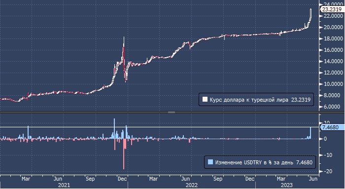 Падение стоимости в среду стало самым значительным с момента обвала лиры в декабре 2021 года. За последние два года стоимость лиры снизилась на 60 процентов по отношению к доллару; сейчас лира стоит всего чуть более 4 американских центов, а за доллар на бирже дают 23,23 лиры.