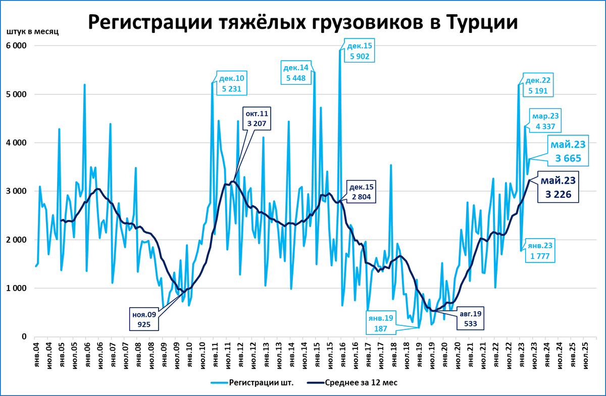 За последние 12 месяцев продано 38,7 тыс. тяжёлых грузовиков.