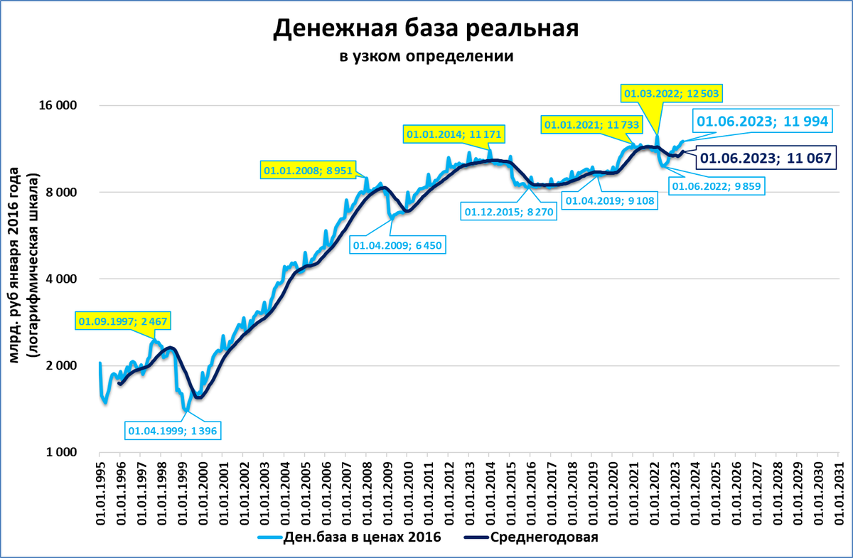 При этом очевидным остаётся быстрый рост реальной УДБ в 1999-2008 годах и медленный в 2008-2023 годах.