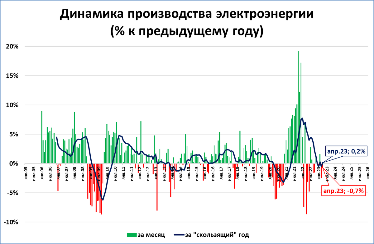 Электроэнергия: -0,7% в апреле