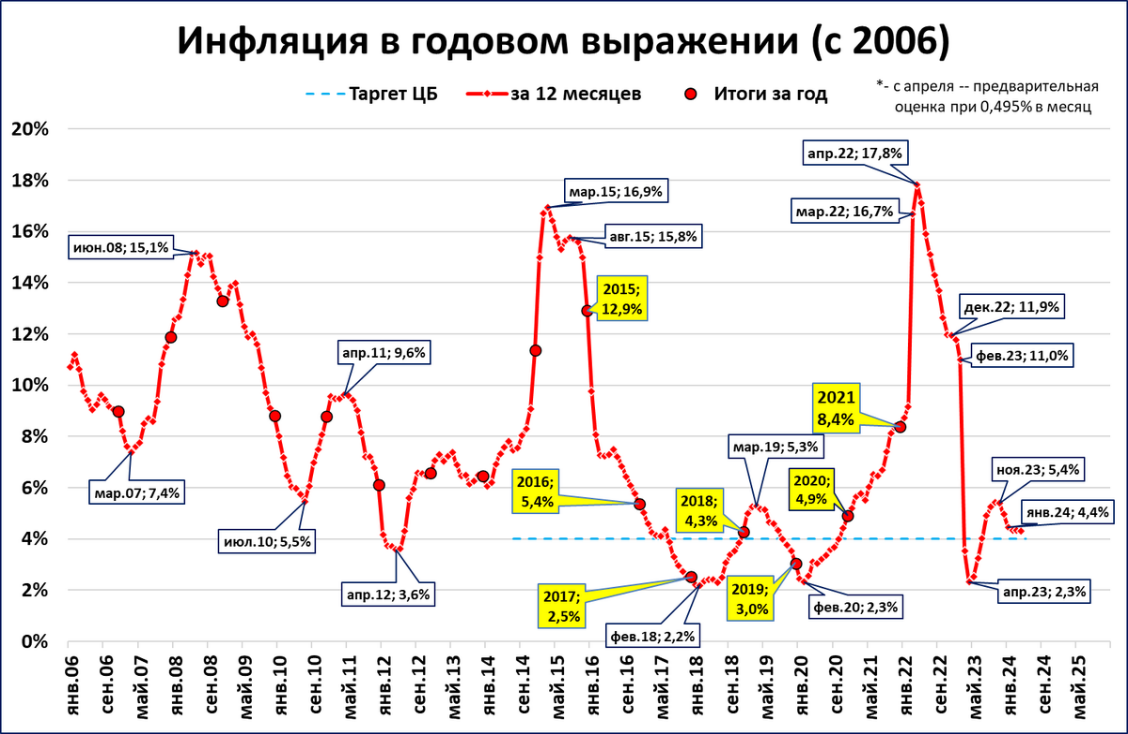 Это почти совпадает с целевым уровнем (таргетом) Банка России, установленном на уровне 4%.
