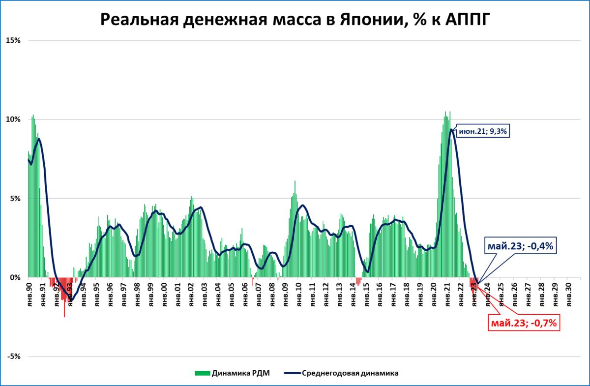 ● В Японии реальная денежная масса сокращается восьмой месяц подряд.