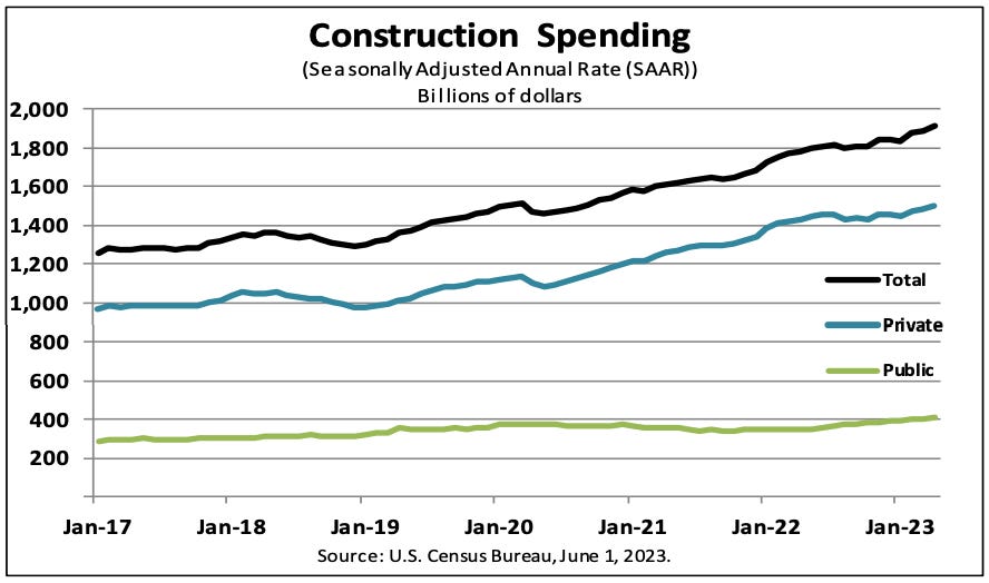 Расходы на строительство растут. Расходы на строительство в апреле выросли на 1,2% до годового показателя в 1,91 трлн долларов.
