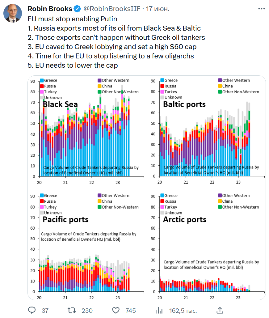 Пока вторую неделю молчит Bloomberg, разобраться с морскими поставками отечественной нефти нам помогает синк танк Bruegel.