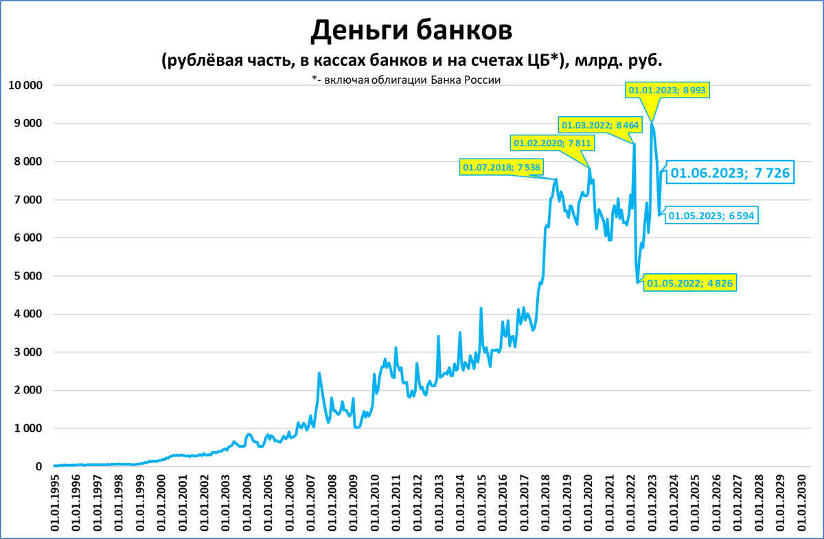 Произошло это благодаря росту денег банков более чем на 1 трлн рублей за один месяц.