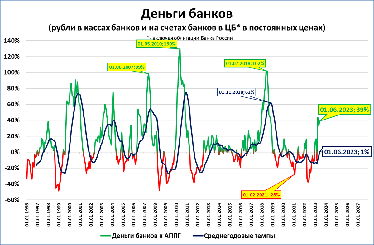 Сейчас в реальном выражении денег у банков на 39% больше, чем год назад.
