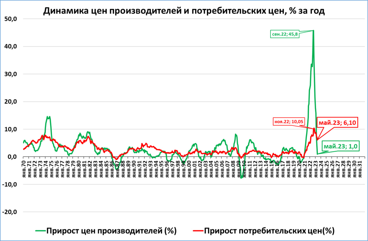 Об этом говорит и месячная динамика: цены производителей выросли в мае к апрелю (+3,7%), как мы уже сказали выше.