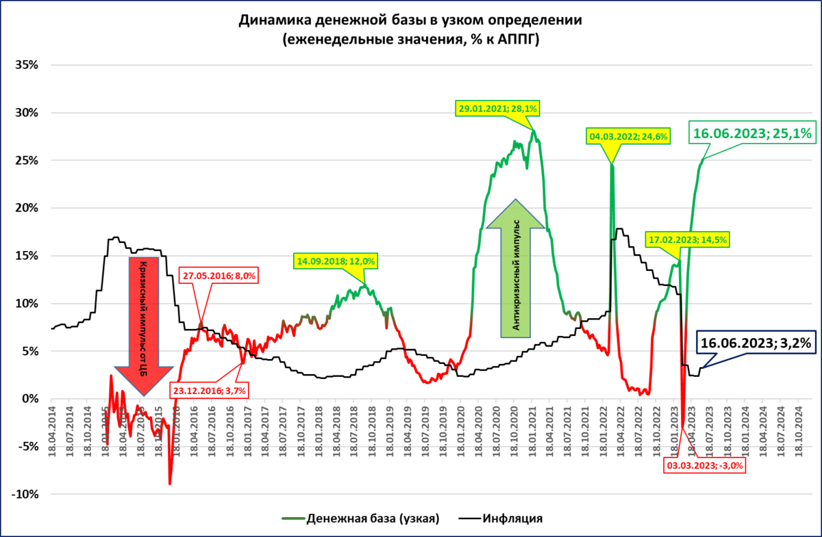 2. Денежная масса. Продолжит ли ЦБ наращивать денежную массу высокими (выше инфляции) темпами.