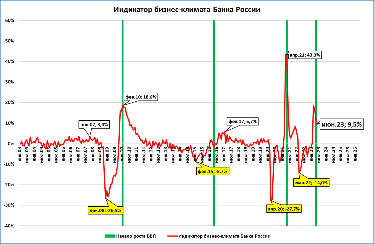 Это позволило нам ещё во 2 квартале 2022 года предположить начало роста ВВП в апреле 2023 года